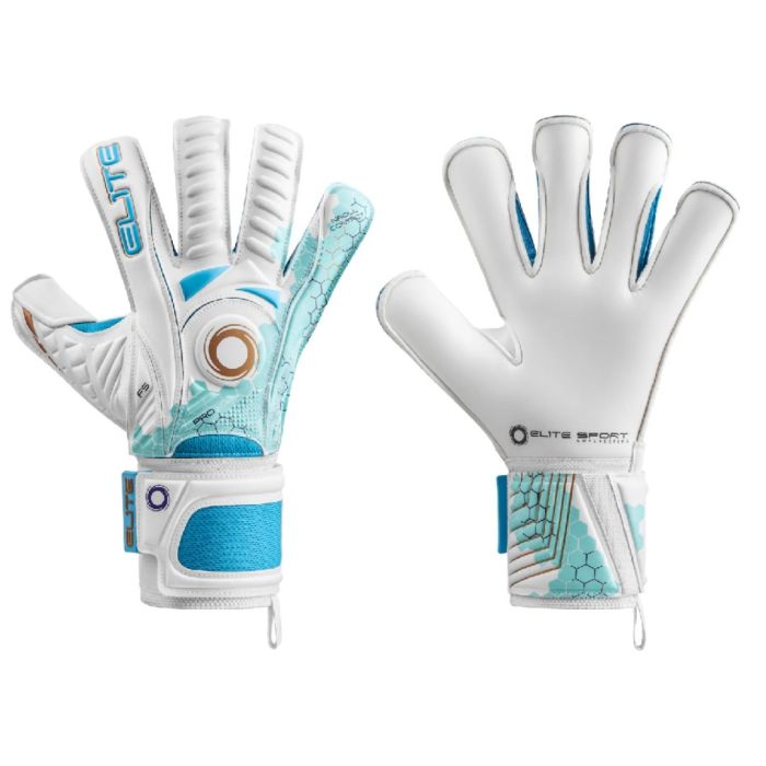 Deze Elite Sport Orca Keepershandschoenen Wit Lichtblauw Brons bieden uitstekende grip met 4 mm Super Control-latex en 4 mm schuim. De rugzijde is versterkt met PS-latex, 3D-reliëf, schuim op de Shock Zone en AVM™-stof voor ventilatie. Met 5 verwijderbare vingersteunen en een 360° latex polsband voor extra stabiliteit en grip. Ideaal voor alle weersomstandigheden, vooral in de zomerhitte dankzij de AVM™-ventilatie!