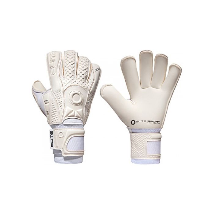 Elite Sport goalkeeper gloves Solo. Palm Cut: Roll finger cut, with double wrapped thumb. Backhand: 4 mm durable GS latex + 4 mm reinforced backing foam on the Shock Zone + Air Ventilation Management AVM fabric. Finger Support: 4 removable finger spines for extra finger support. Wrist Closure: 10 cm wide elastic wristband and 6-line stretch strap.