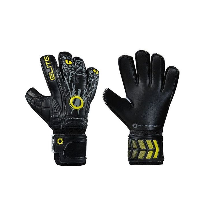 Elite Sport goalkeeper gloves Vibora. Palm Cut: Flat Cut with a wrapped thumb for additional latex to ball contact. Backhand: 4 mm durable SS latex + 4 mm reinforced backing foam on the Shock Zone + Air Ventilation Management AVM fabric. Finger Support: 5 removable finger spines for extra finger support. Wrist Closure: 10 cm wide elastic wristband and 360 degree, 9 cm wide latex wrist strap.