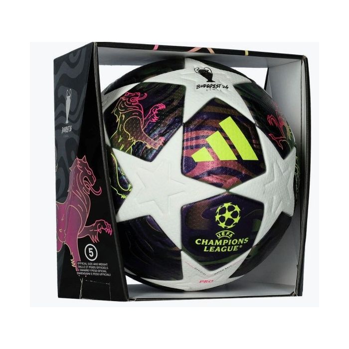 - Voor voetballers die precisie en prestaties eisen, is de UEFA Champions League Final Pro Ball ontworpen om jouw spel te verbeteren. Met hoogwaardige materialen in de buitenbal, de voering en de binnenbal belooft deze wedstrijdbal uitzonderlijke prestaties.