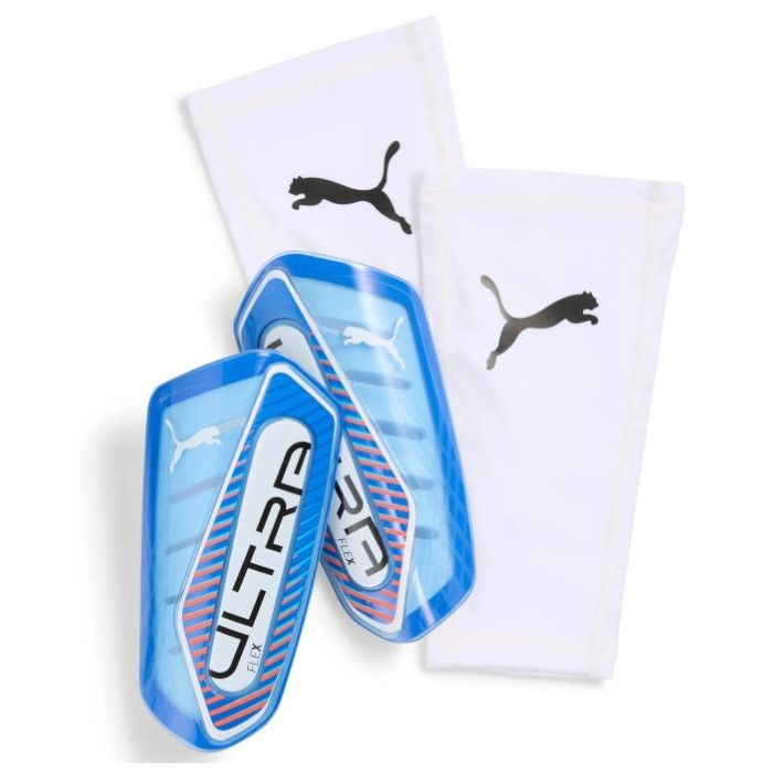 Bereid je voor om te schitteren met deze PUMA Ultra Flex Sleeve Scheenbeschermers Blauw Wit Felrood, compleet met sleeves. De compressiesleeve met handig insteekvak biedt maximale wendbaarheid, terwijl de EVA-achterzijde met reliëf zorgt voor uitstekende schokabsorptie. De ultraflexibele TPU-softshell biedt optimale bescherming. Klaar voor de aftrap!